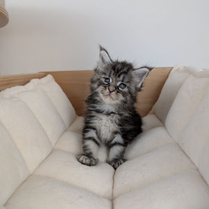 Der Black-Silver Junge kam als drittes auf die Welt mit einem Startgewicht von 131 g. Er klettert am liebsten auf seinen Menschen rum und kuschelt sich auf den Schoß. Er ist der gemütlichste aus dem ganzen Wurf und zieht kuscheln dem toben und sogar dem Fressen vor.